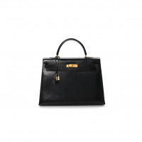 HERMÈS EDITION SO BLACK BOX KELLY 35 HANDBAG BLACK (35*25*12cm)