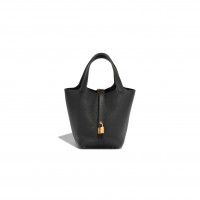This Picotin Lock is in Rose Texas clemence leather with palladium hardware and has tonal stitching with two top handles. The interior is lined with Rose Texas natural leather, no interior pockets and has a pull through closure secured by padlock. Accompanied by: Hermes box, Hermes dustba..