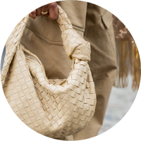 Small Intrecciato suede top handle bag with sliding cross-body strapCompartmented interior with one zipped pocket, one open pocketMagnetic closureLining: Suede bonded IntrecciatoColor: Blue RoyalHardware: Brass finish..